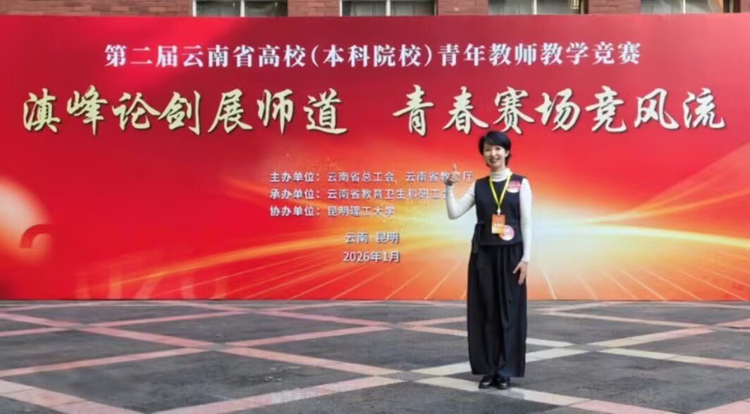 云南省高校青年教师教学竞赛旨在深入推动高校青年教师队伍建设改革,提升广大青年教师的教学能力和业务水平,是省内高等教育领域一项高规格、高水平的权威性教学赛事。竞赛内容涵盖教学设计、课堂教学和教学反思等多个环节,全面考察教师的教育理念、专业素养和育人能力。陈利红老师在此次竞赛中展现出扎实的学识、先进的教学方法以及对课堂的娴熟驾驭能力,得到了评审专家的一致好评,充分体现了我校青年教师过硬的教学功底和昂扬的精神风貌。